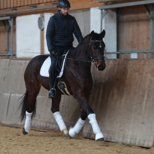 RPZ Frangelico ist ein absolutes Traumpferd! Er ist nicht nur bildschön und hat 3 hervorragende Grundgangarten, sondern ist auch noch äußerst unkompliziert, nervenstark und umgänglich. Obwohl erst kurz unter dem Sattel zeigt er bereits sehr eine verblüffende Rittigkeit mit hervorragender Hinterhandmechanik. Beste Voraussetzungen für eine traumhafte Karriere als Dressurpferd. Aus der Mutterlinie kommen bereits bis Intermediaire erfolgreiche Nachkommen.